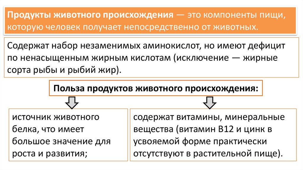 Продукты животного происхождения — это компоненты пищи,которую человек получает непосредственно от животных.