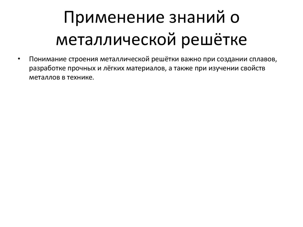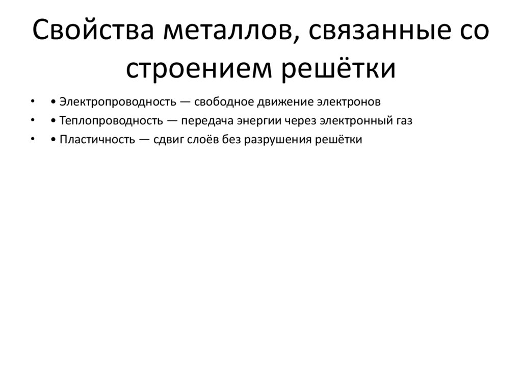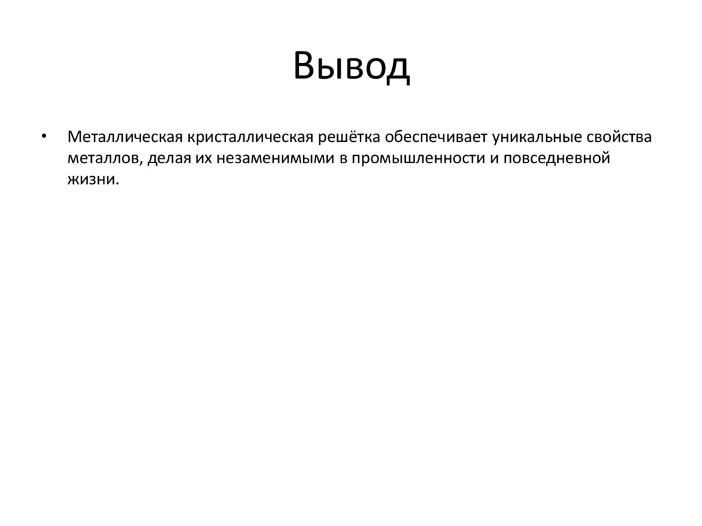 ВыводМеталлическая кристаллическая решётка обеспечивает уникальные свойства