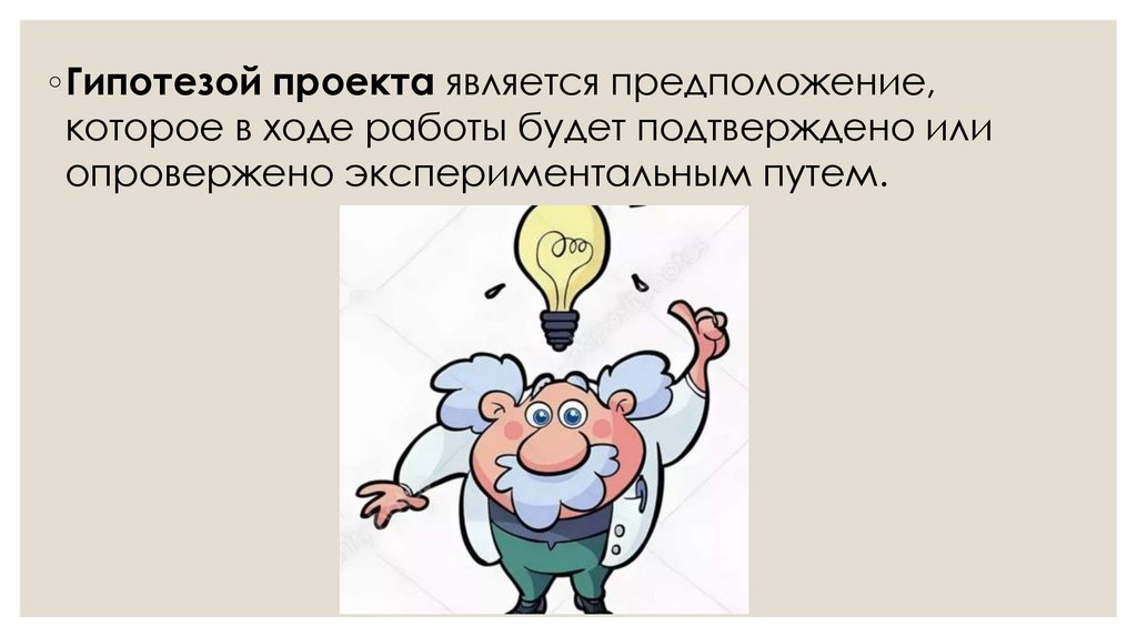 ◦Гипотезой проекта является предположение,которое в ходе работы будет подтверждено или