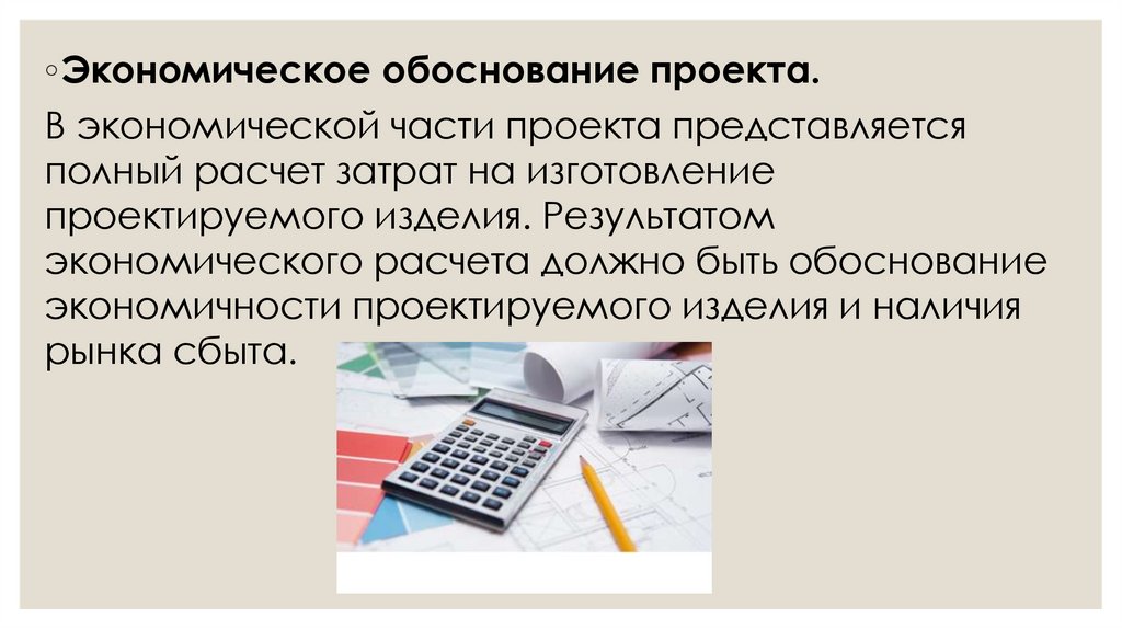 ◦Экономическое обоснование проекта.В экономической части проекта представляется