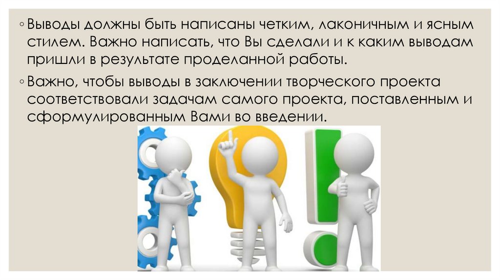 ◦ Важно, чтобы выводы в заключении творческого проекта