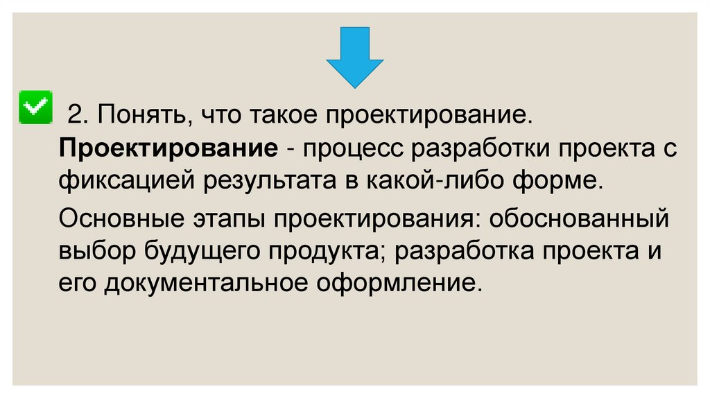 2. Понять, что такое проектирование.Проектирование - процесс разработки проекта с
