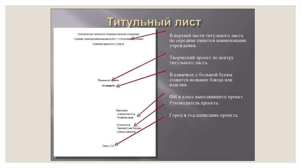 6. Титульный лист творческого проекта должен содержать следующие сведения: