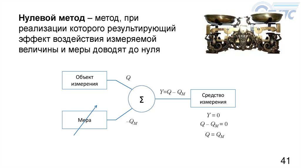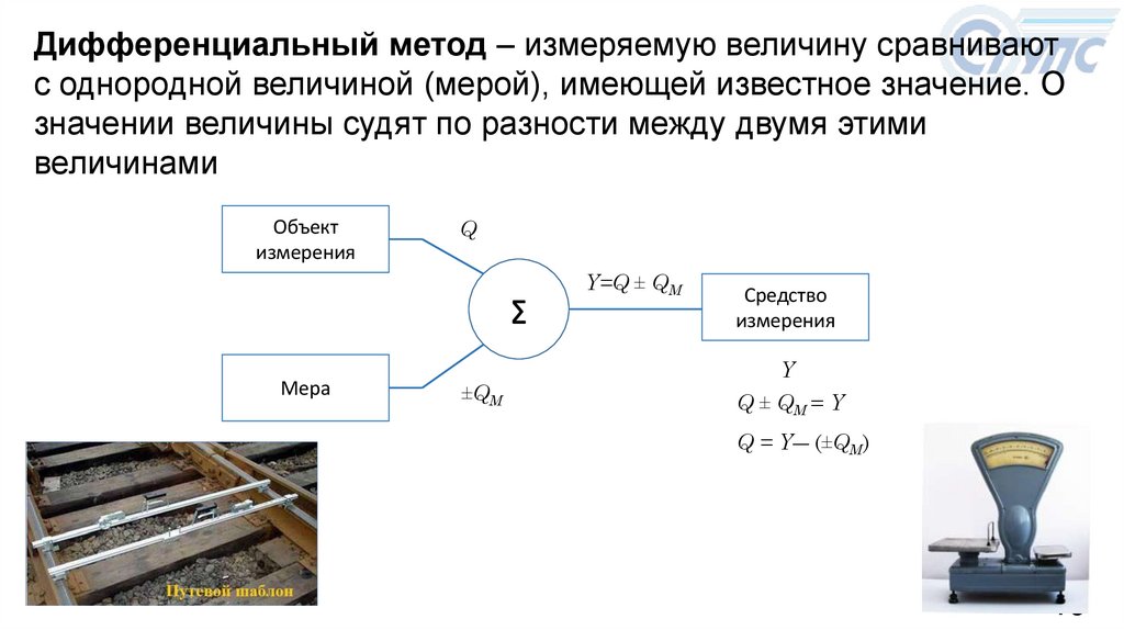 Дифференциальный метод – измеряемую величину сравниваютс однородной величиной (мерой), имеющей известное значение. О