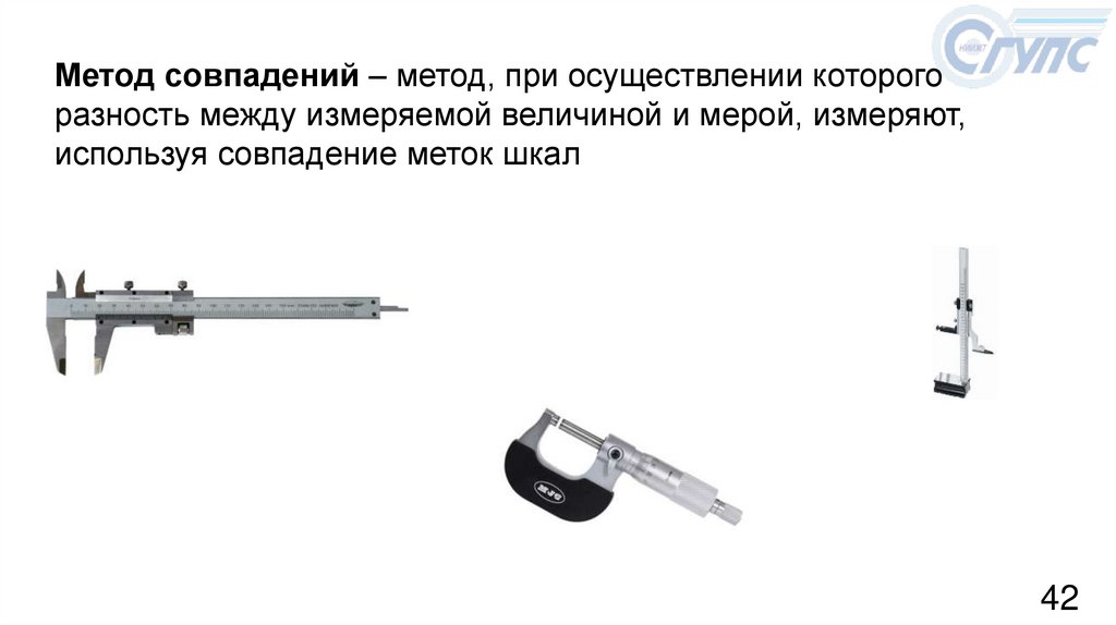 Метод совпадений – метод, при осуществлении которогоразность между измеряемой величиной и мерой, измеряют,