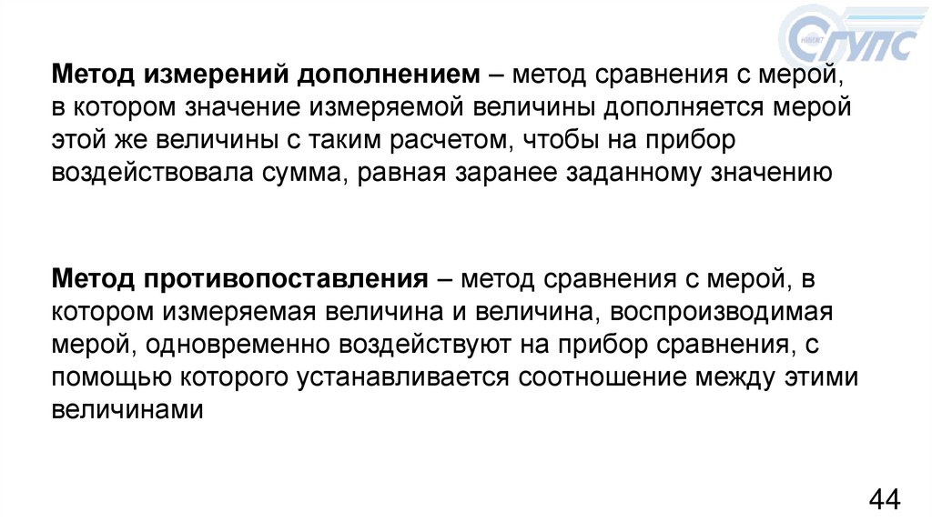 Метод измерений дополнением – метод сравнения с мерой,в котором значение измеряемой величины дополняется мерой
