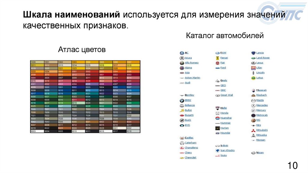 Шкала наименований используется для измерения значенийкачественных признаков.