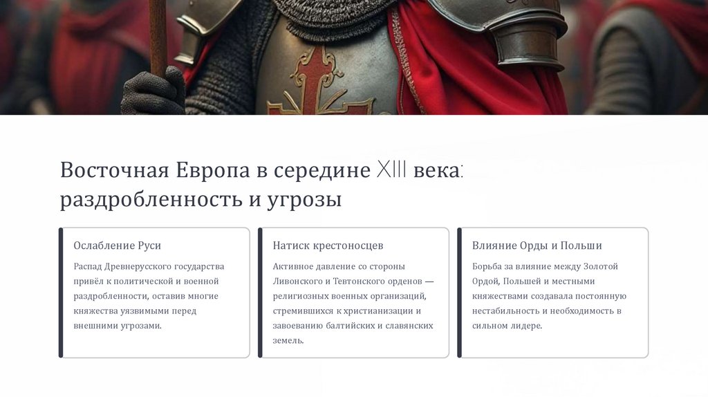 Восточная Европа в середине XIII века:раздробленность и угрозы