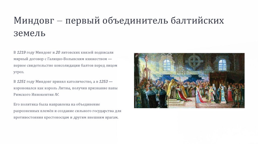 Миндовг — первый объединитель балтийскихземель