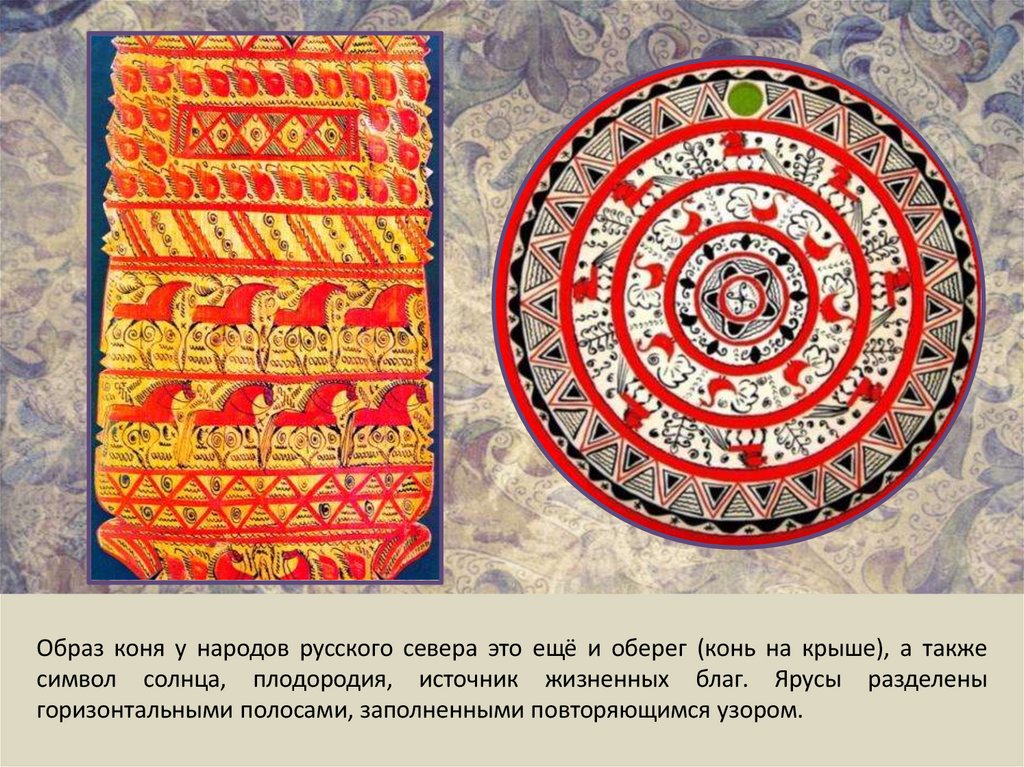 Образ коня у народов русского севера это ещё и оберег (конь на крыше), а такжесимвол солнца, плодородия, источник жизненных благ. Ярусы разделены