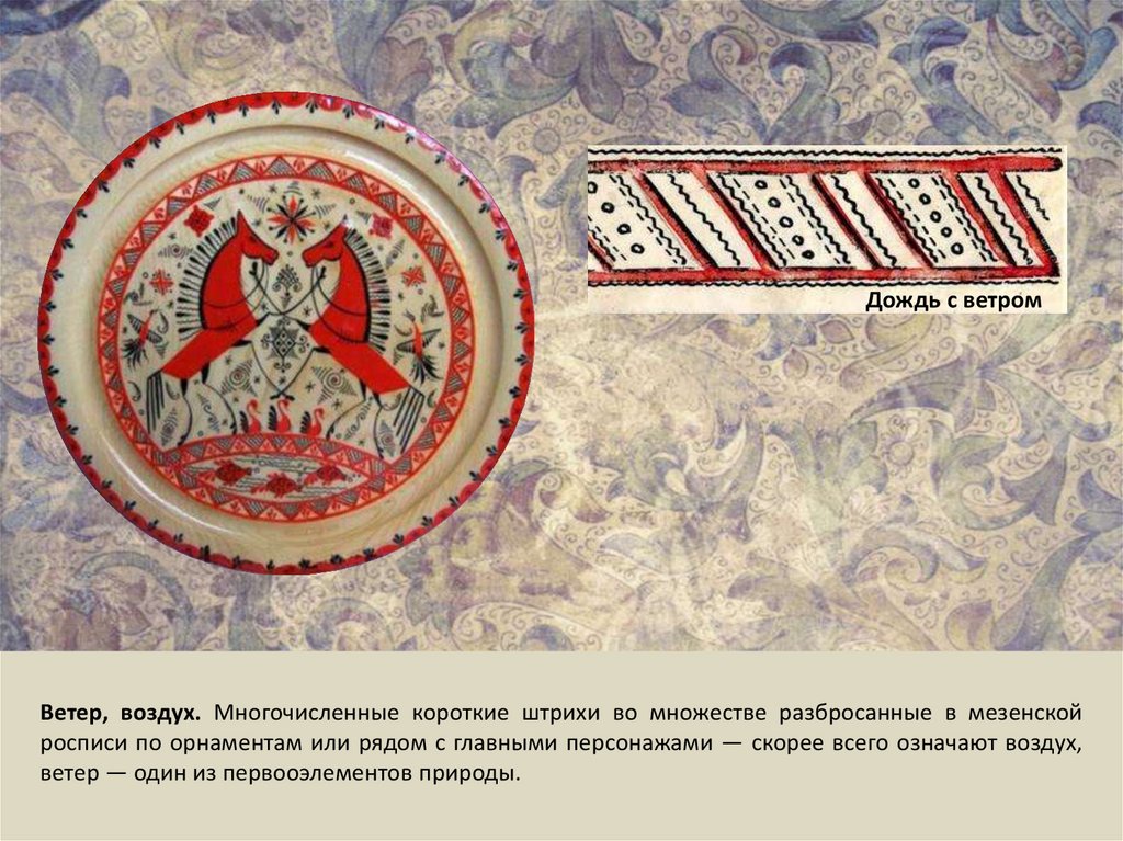 Дождь с ветромВетер, воздух. Многочисленные короткие штрихи во множестве разбросанные в мезенской