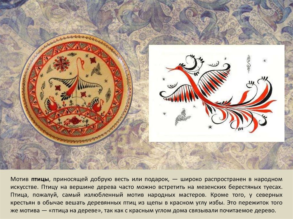 Птица, пожалуй, самый излюбленный мотив народных мастеров. Кроме того, у северных