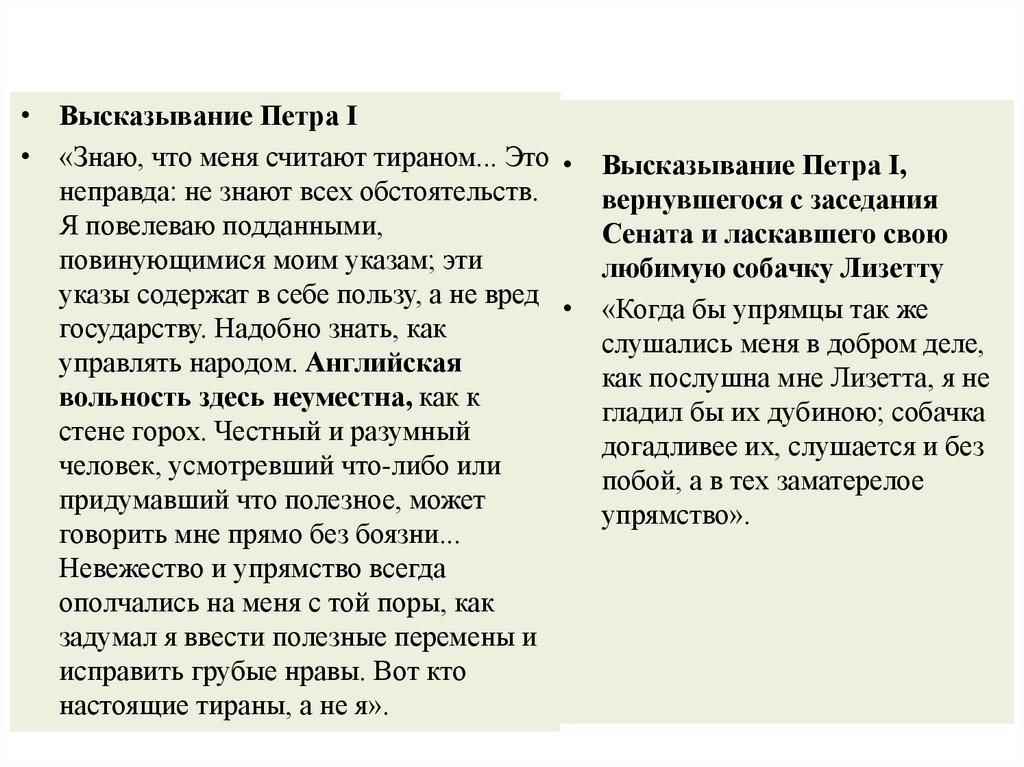 • Высказывание Петра I• «Знаю, что меня считают тираном... Это