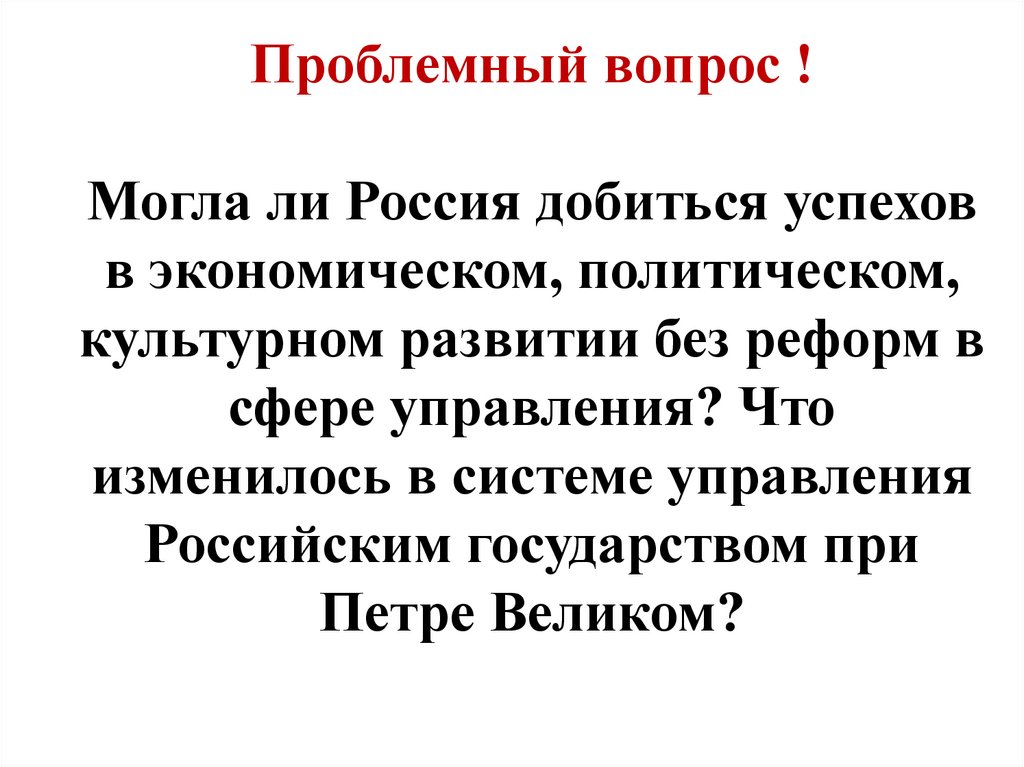 • Начиная каждую из своихреформ, Пётр Великий, как