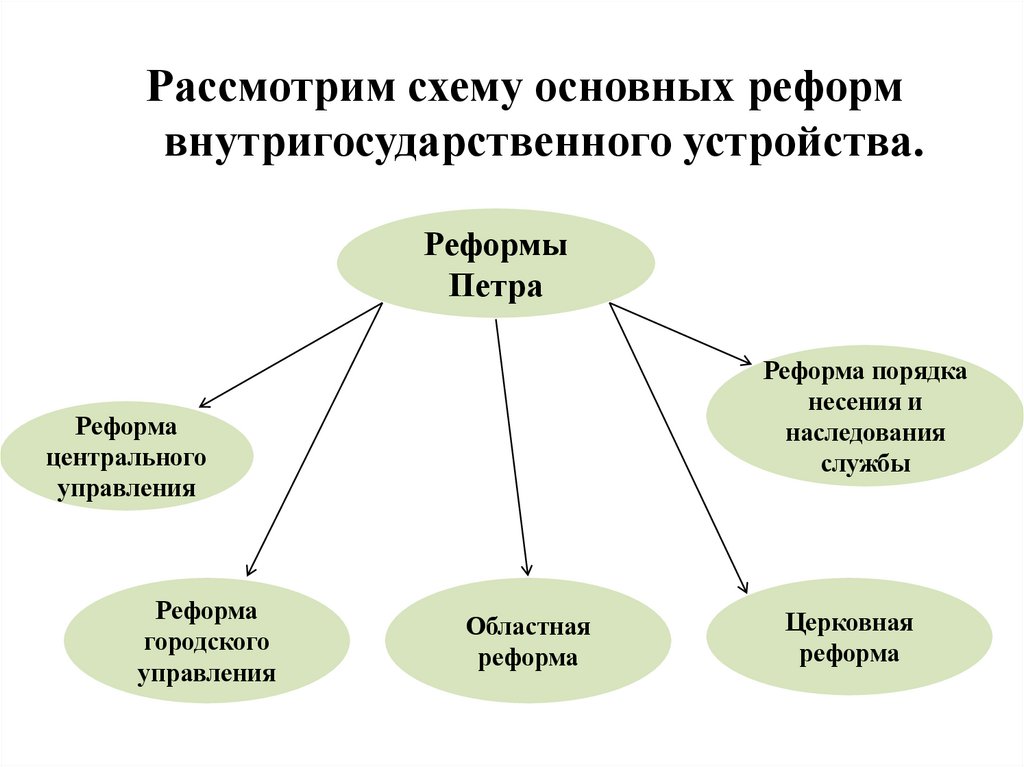 Рассмотрим схему основных реформвнутригосударственного устройства.