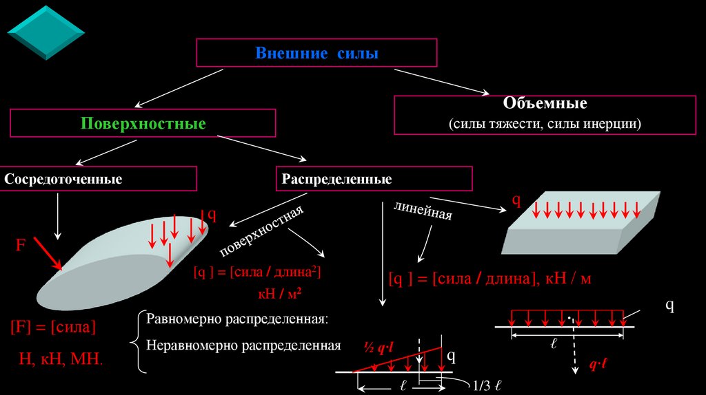 тела и приложены к каждой его частице (собственный вес сооружения,