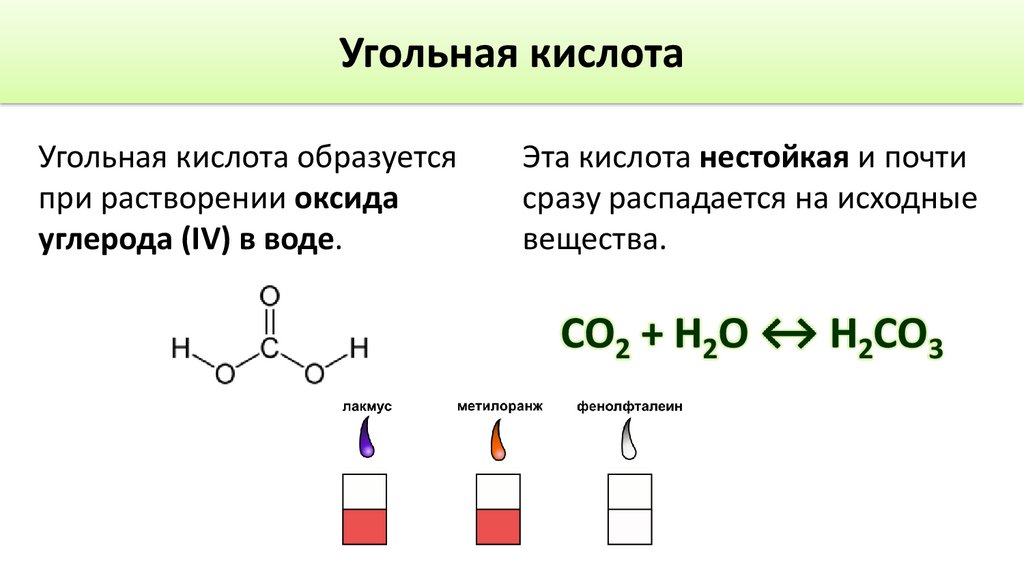 Угольная кислотаУгольная кислота образуется