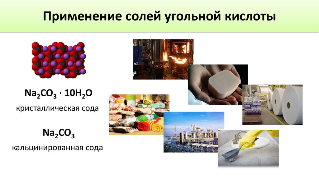 Применение солей угольной кислотыNa2CO3 · 10H2O