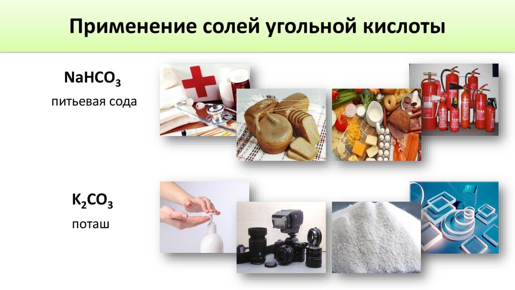 Применение солей угольной кислотыNaHCO3