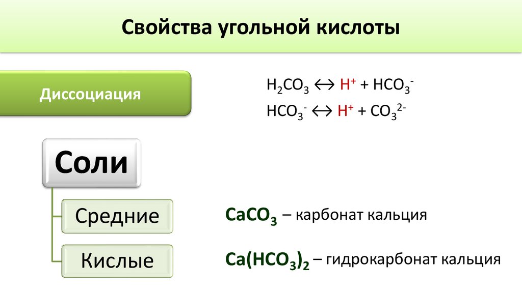 Свойства угольной кислотыДиссоциация