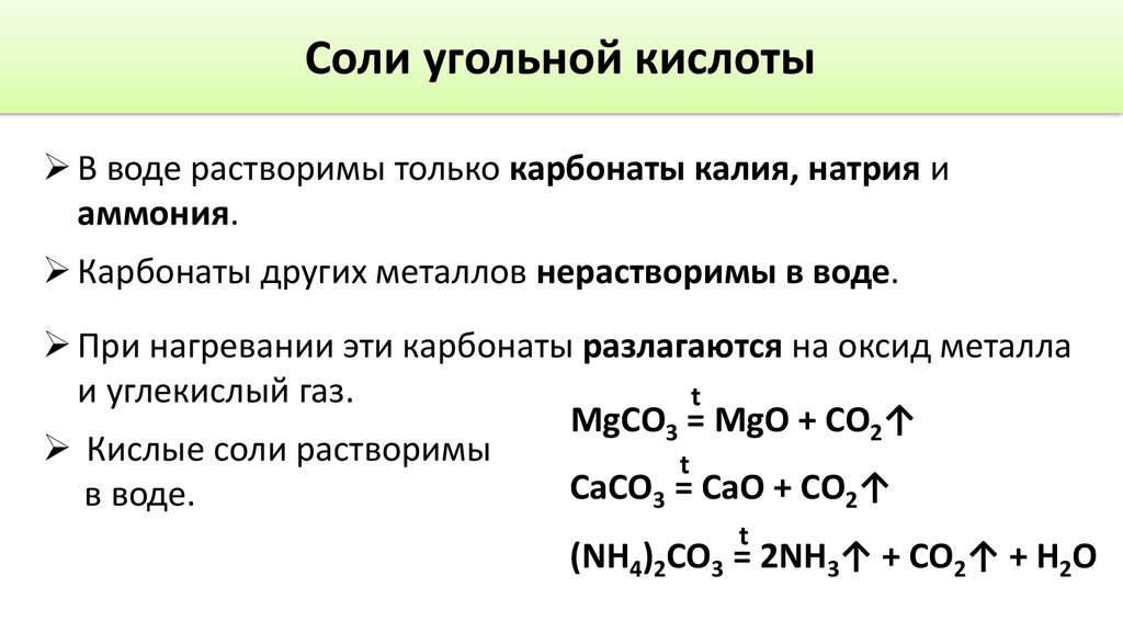 Соли угольной кислоты➢ В воде растворимы только карбонаты калия, натрия и