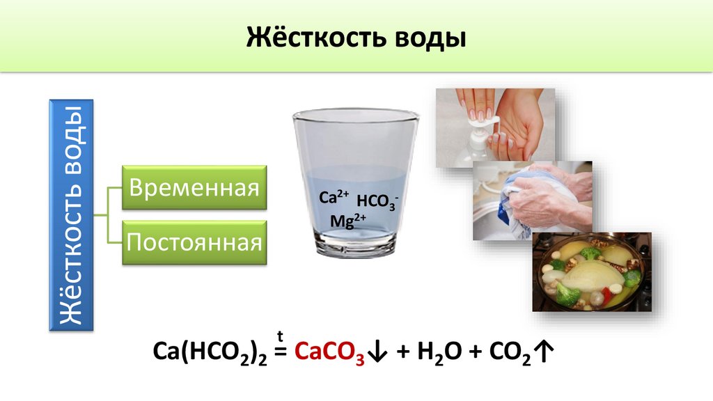 ➢ Временная жёсткость обусловлена наличием гидрокарбонатов кальция и
