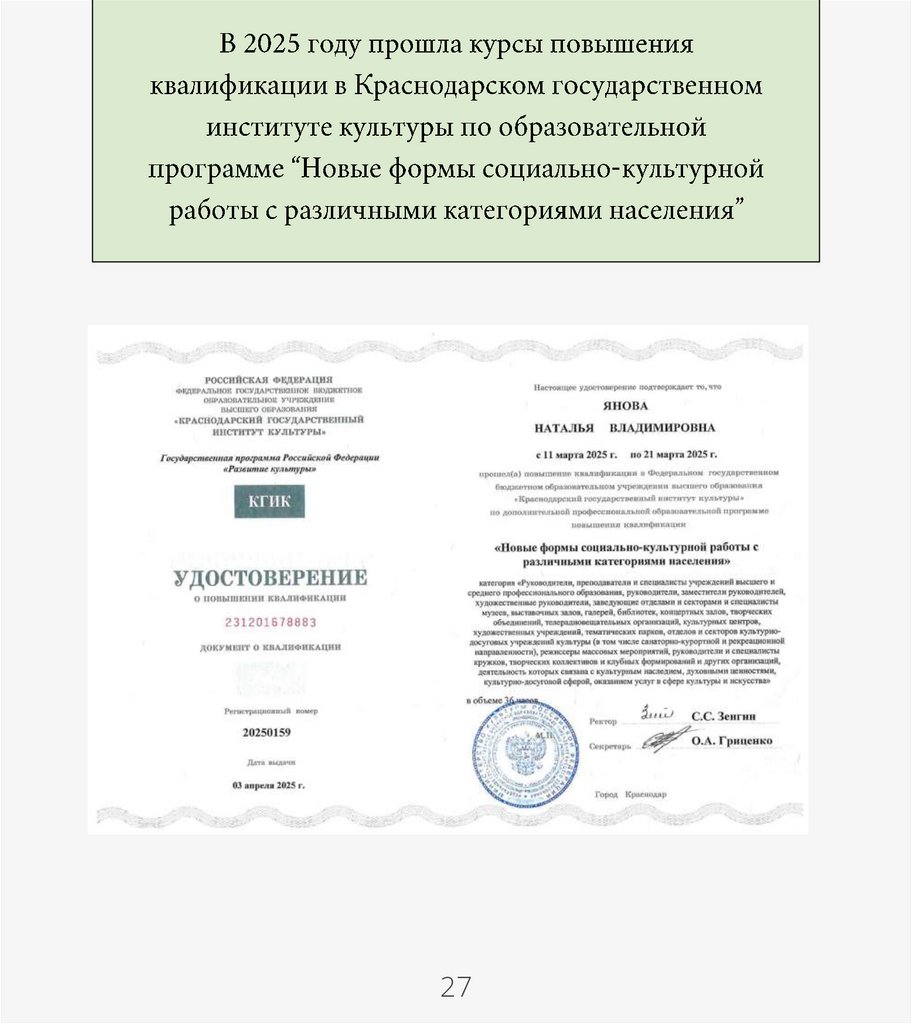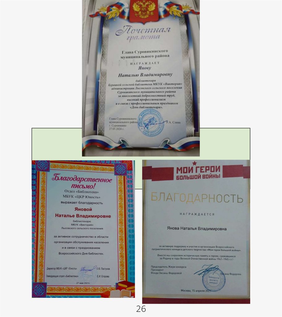Стаж работы в Бурацкой библиотеке: 27 года.