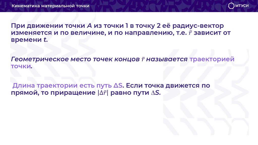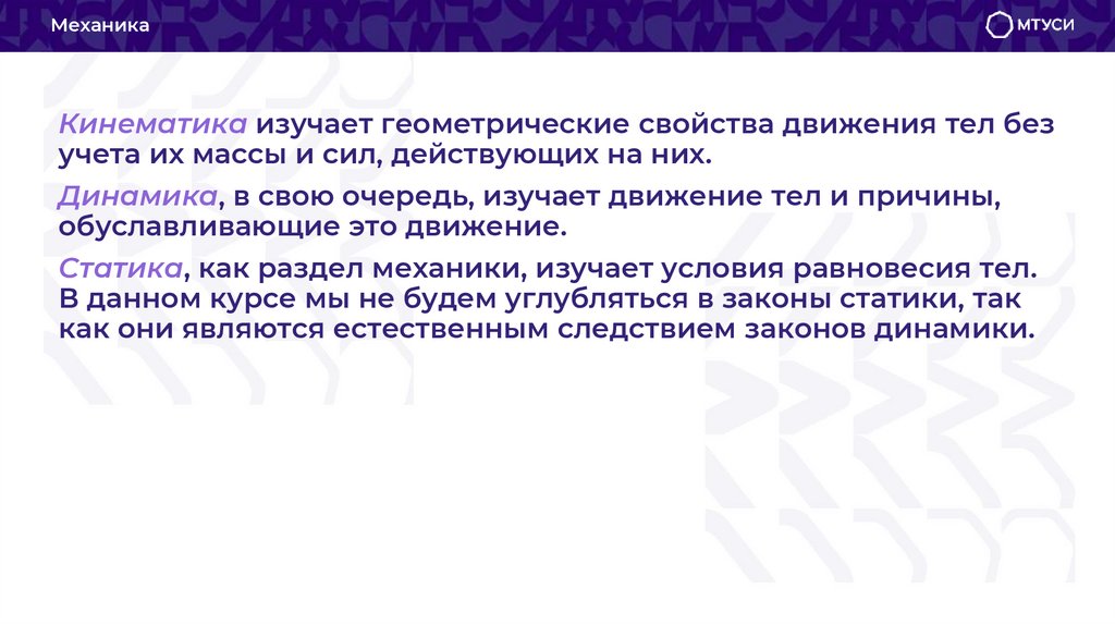 МеханикаКинематика изучает геометрические свойства движения тел без