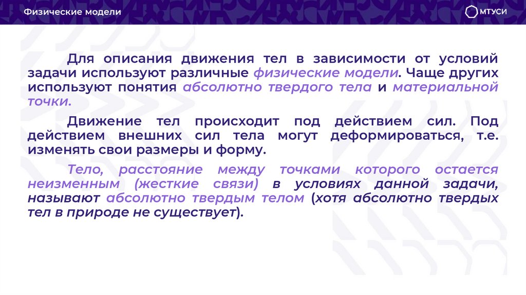 Физические моделиДля описания движения тел в зависимости от условий