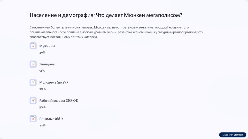 Население и демография: Что делает Мюнхен мегаполисом?С населением более 1,5 миллиона человек, Мюнхен является третьим по величине городом Германии. Его