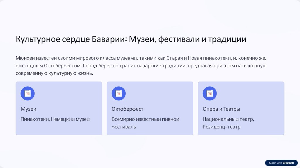 Культурное сердце Баварии: Музеи, фестивали и традицииМюнхен известен своими мирового класса музеями, такими как Старая и Новая пинакотеки, и, конечно же,