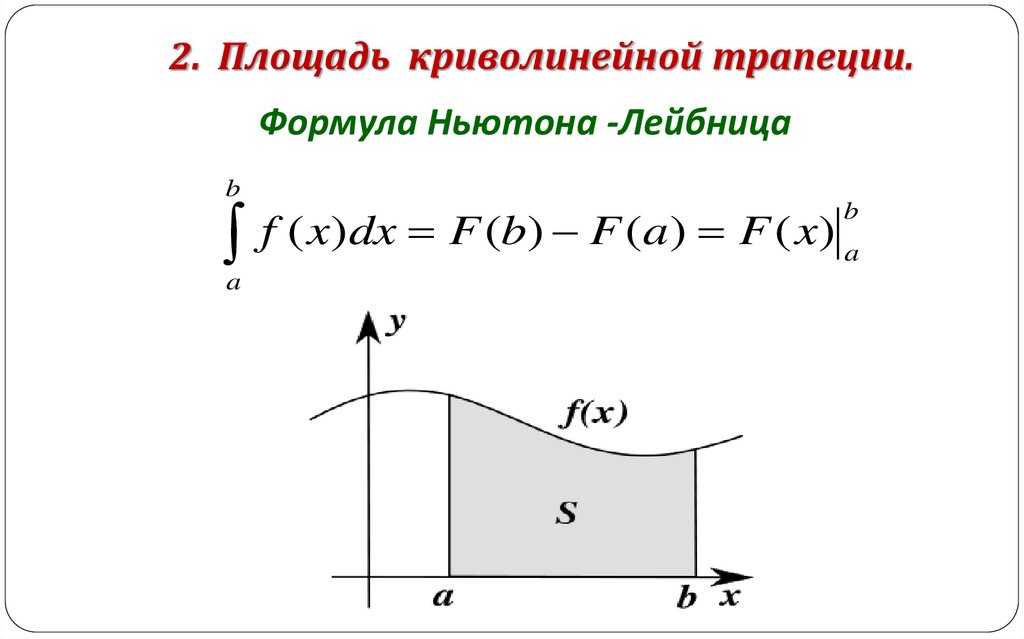 2. Площадь криволинейной трапеции.Формула Ньютона -Лейбница