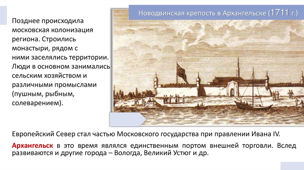 Архангельск в это время являлся единственным портом внешней торговли. Вслед