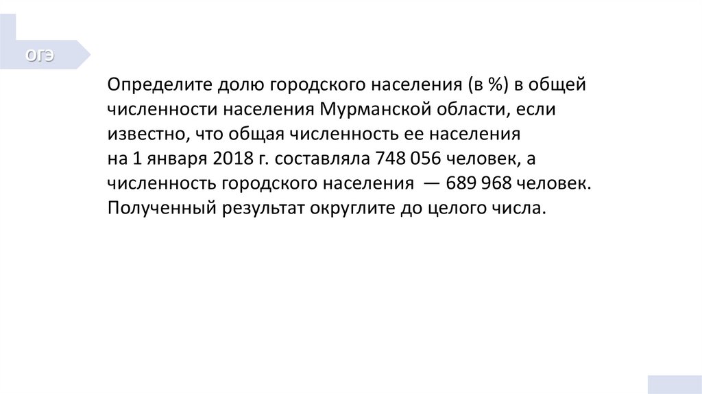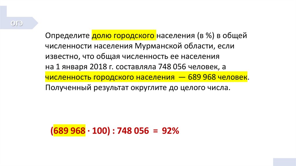 ОГЭОпределите долю городского населения (в %) в общей