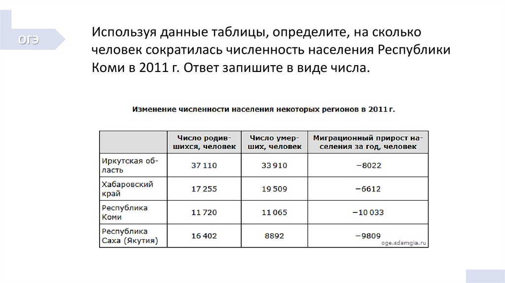 ОГЭИспользуя данные таблицы, определите, на сколько человек