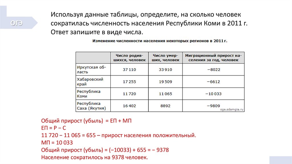 Общий прирост (убыль) = (−10033) + 655 = − 9378