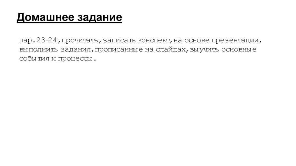 Домашнее заданиепар.23-24,прочитать,записать конспект,на основе презентации,