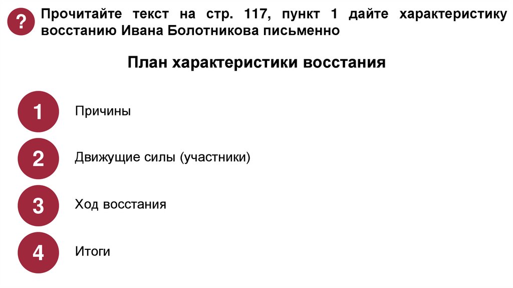 План характеристики восстания
