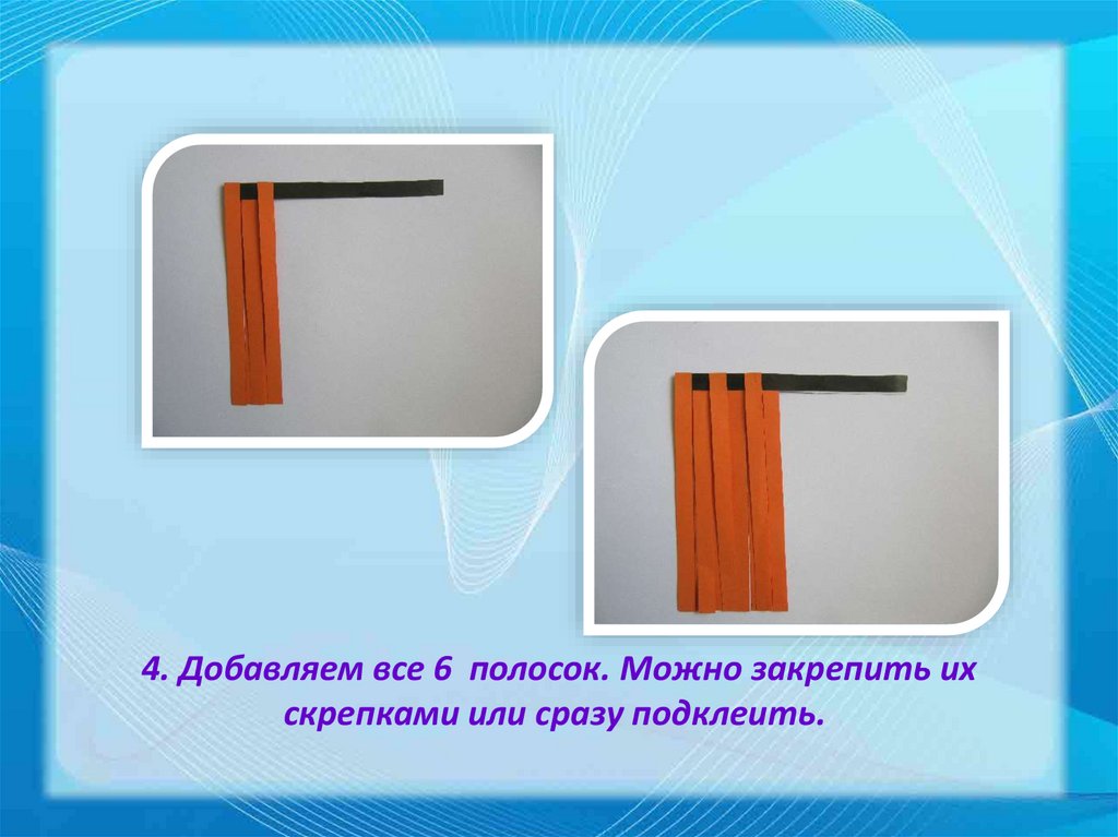4. Добавляем все 6 полосок. Можно закрепить ихскрепками или сразу подклеить.