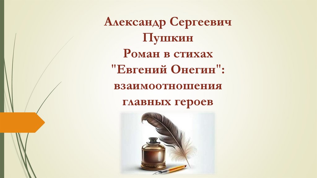 1. Александр Сергеевич Пушкин Роман в стихах "Евгений Онегин": взаимоотношения главных героев