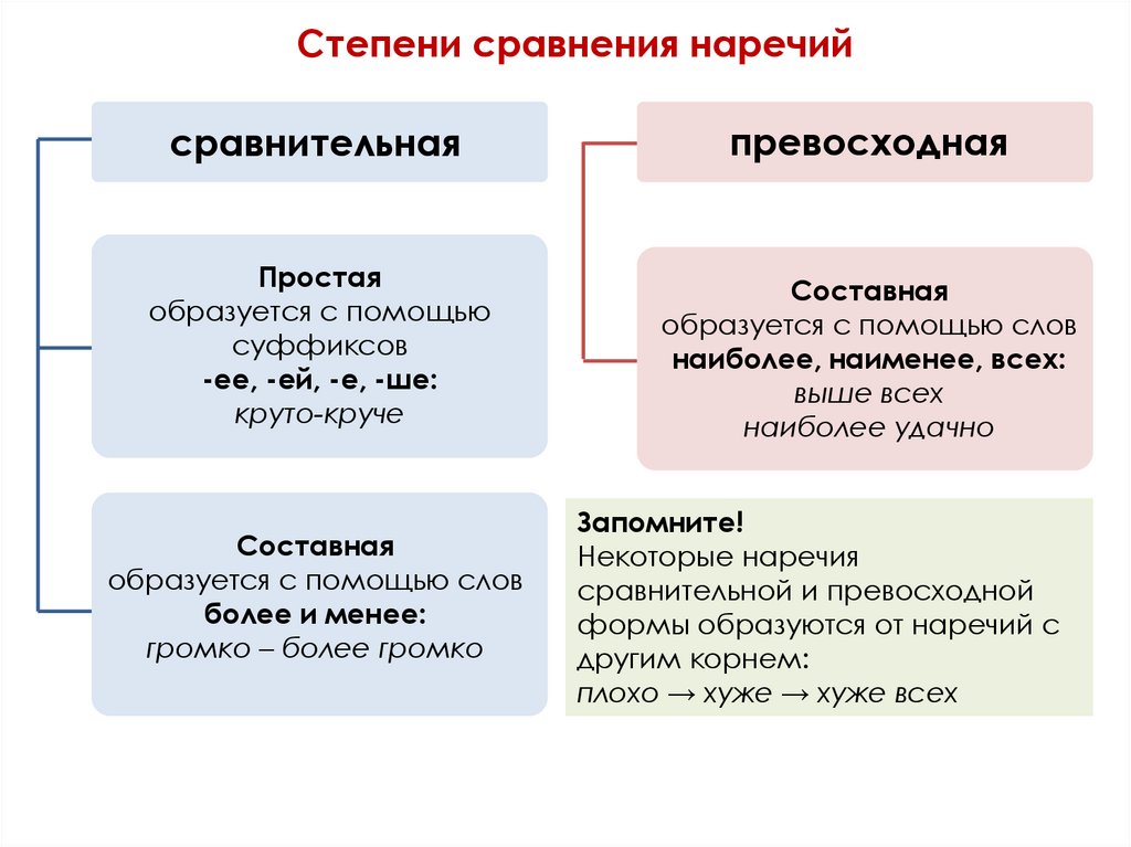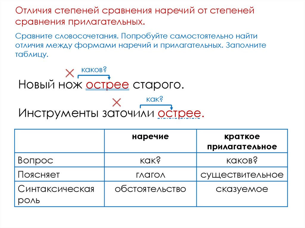 Отличия степеней сравнения наречий от степенейсравнения прилагательных.