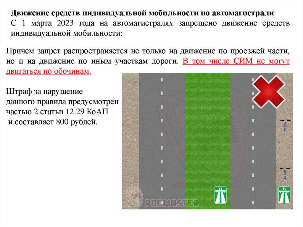 Движение средств индивидуальной мобильности по автомагистралиС 1 марта 2023 года на автомагистралях запрещено движение средств