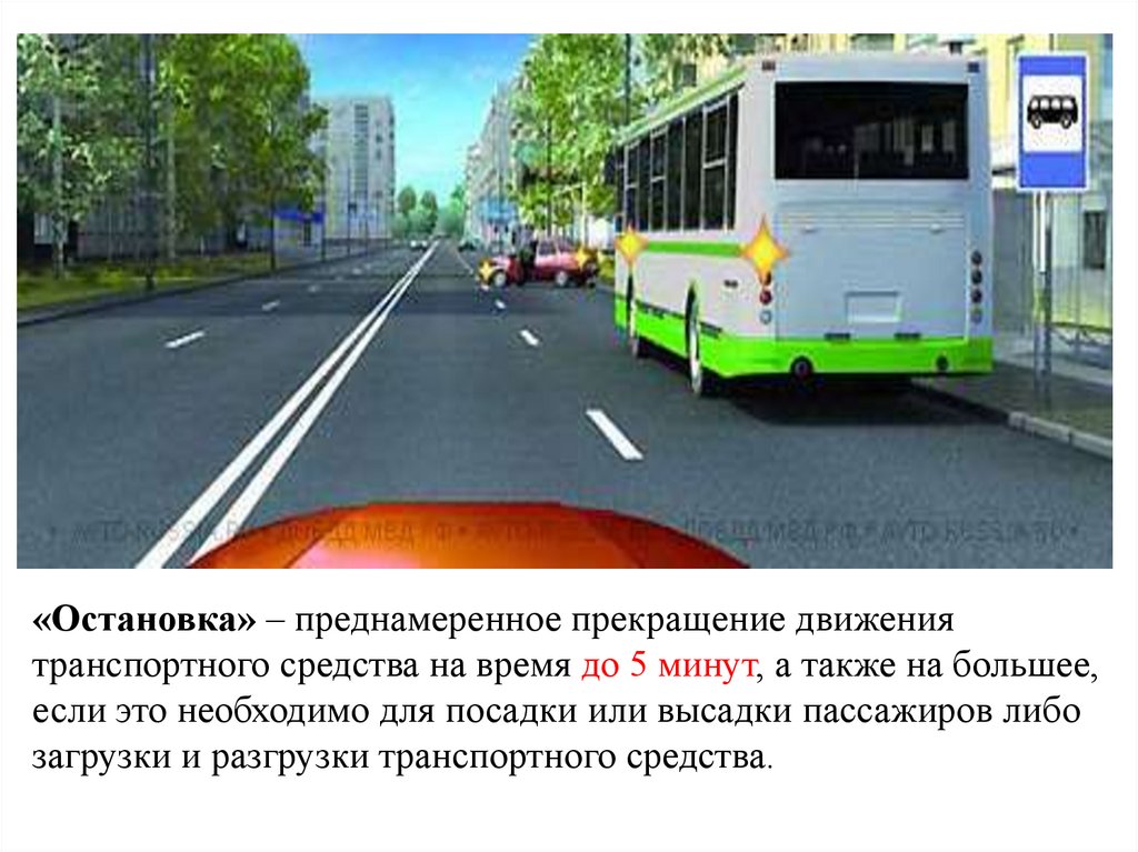 52. «Стоянка» - преднамеренное прекращение движения транспортного средства на время более 5 минут по причинам, не связанным с