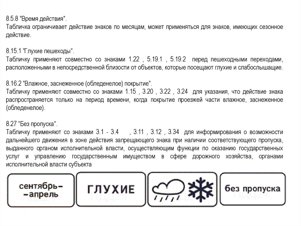 Табличку применяют совместно со знаками 1.15 , 3.20 , 3.22 , 3.24 для указания, что действие знака
