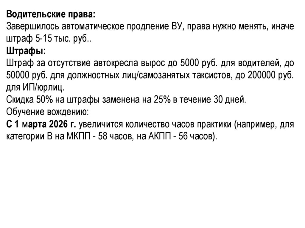 автоматическое продление прав до конца 2026 года, но появились новые штрафы,