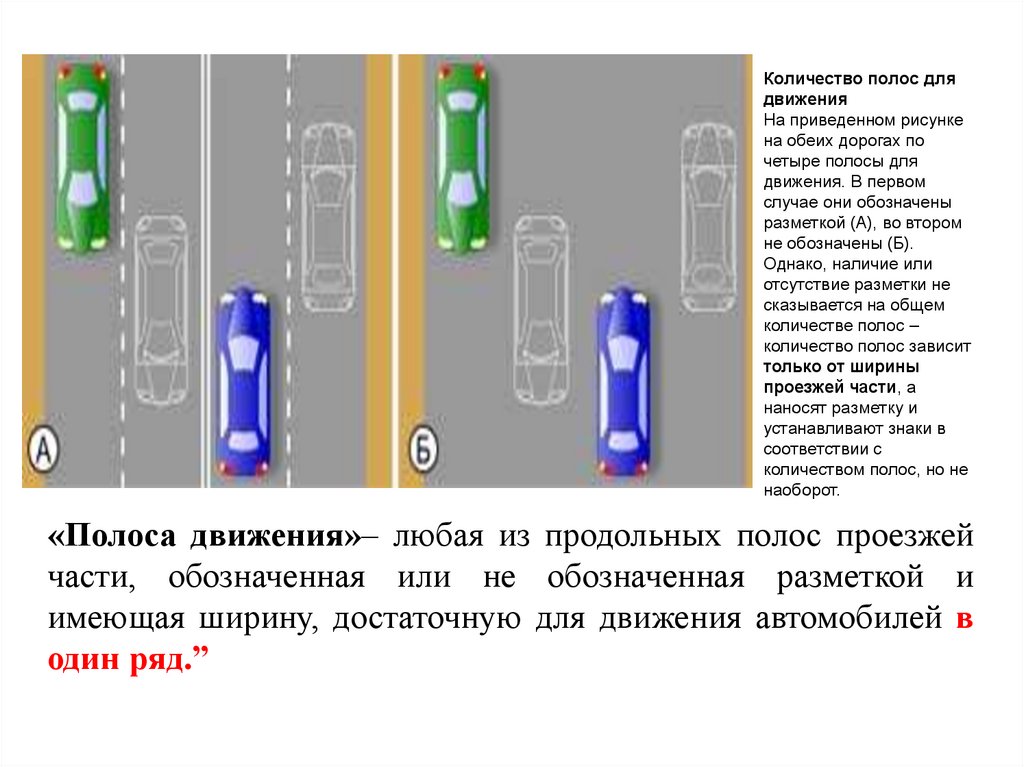 «Полоса движения»– любая из продольных полос проезжей
