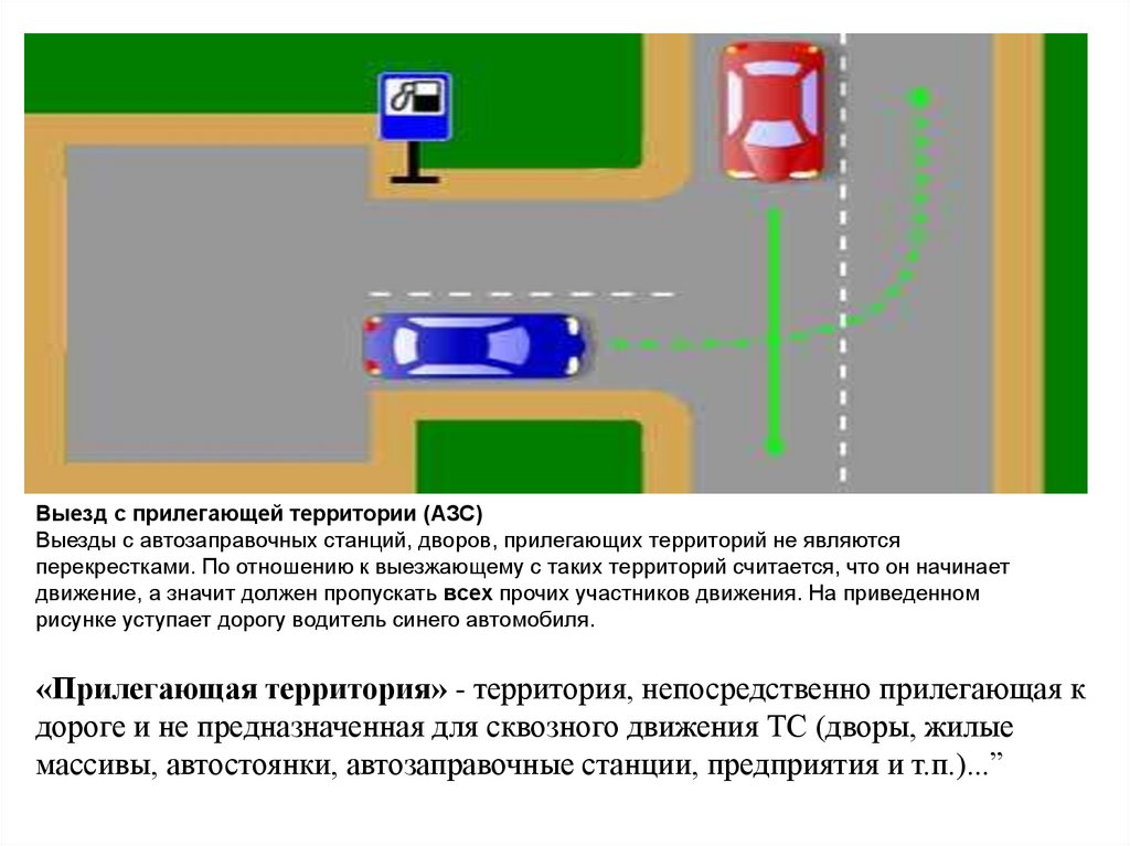 Выезд с прилегающей территории (АЗС)Выезды с автозаправочных станций, дворов, прилегающих территорий не являются
