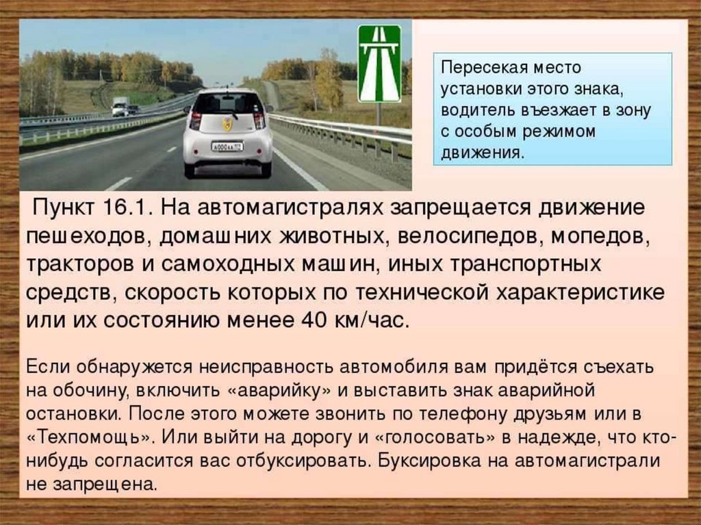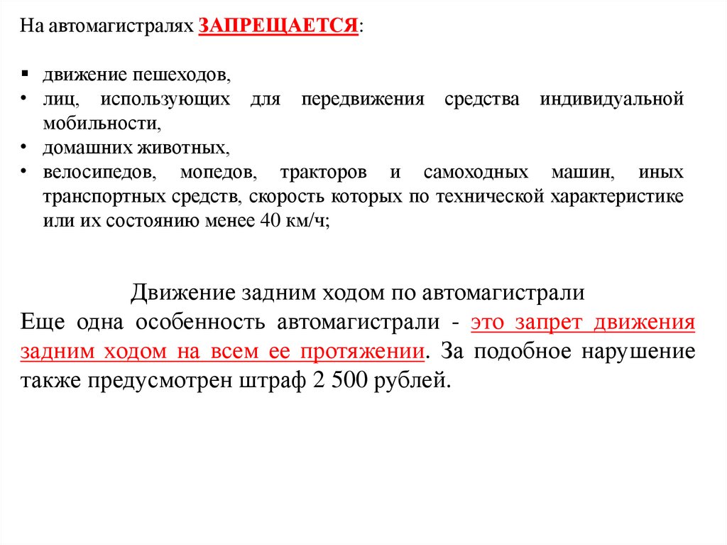 Еще одна особенность автомагистрали - это запрет движения