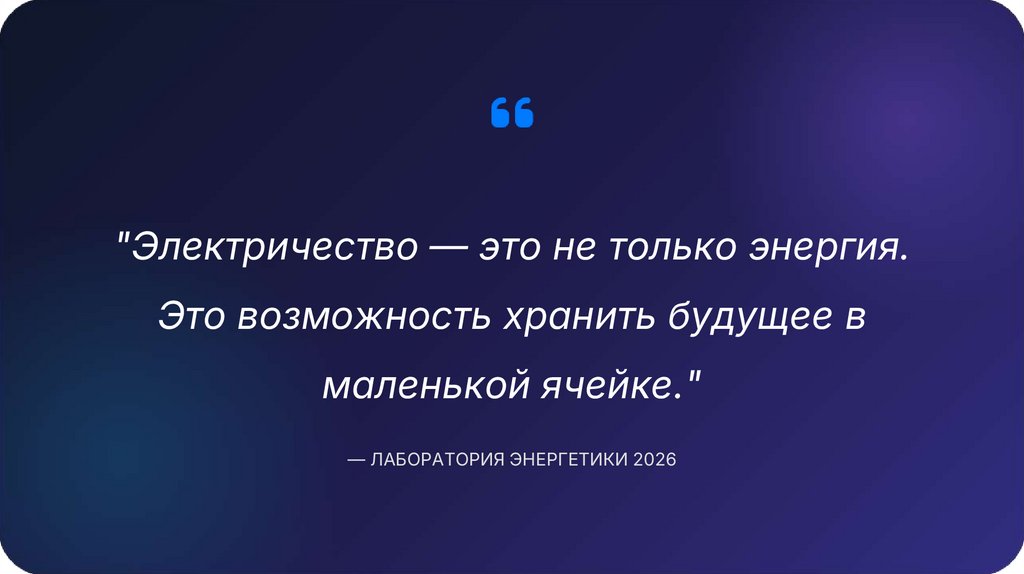 "Электричество — это не только энергия.Это возможность хранить будущее в