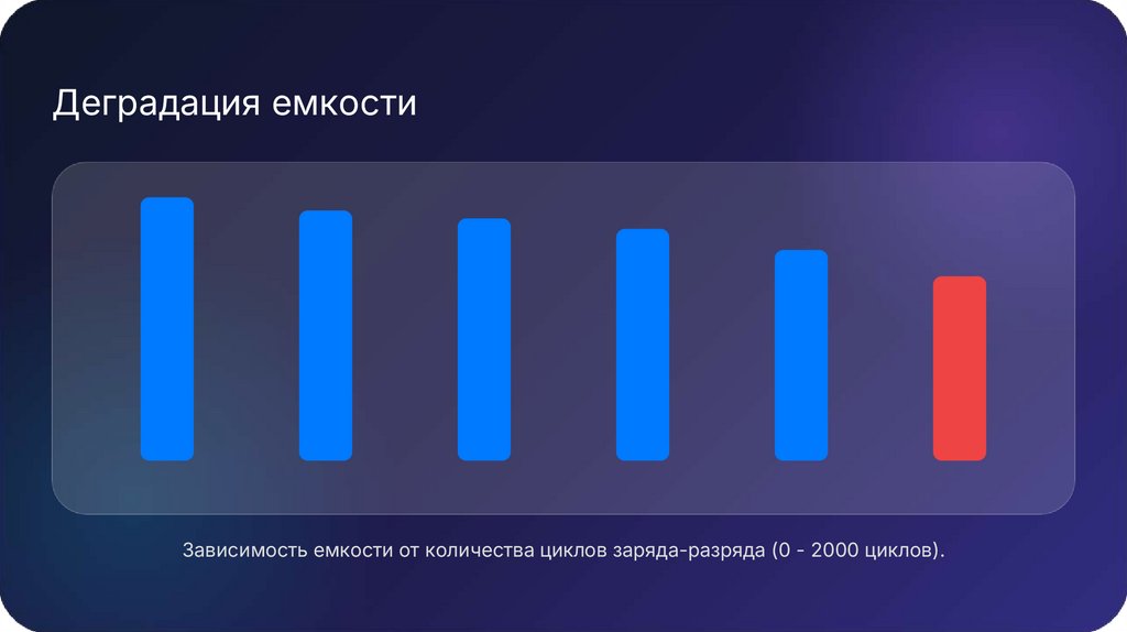 Деградация емкостиЗависимость емкости от количества циклов заряда-разряда (0 - 2000 циклов).